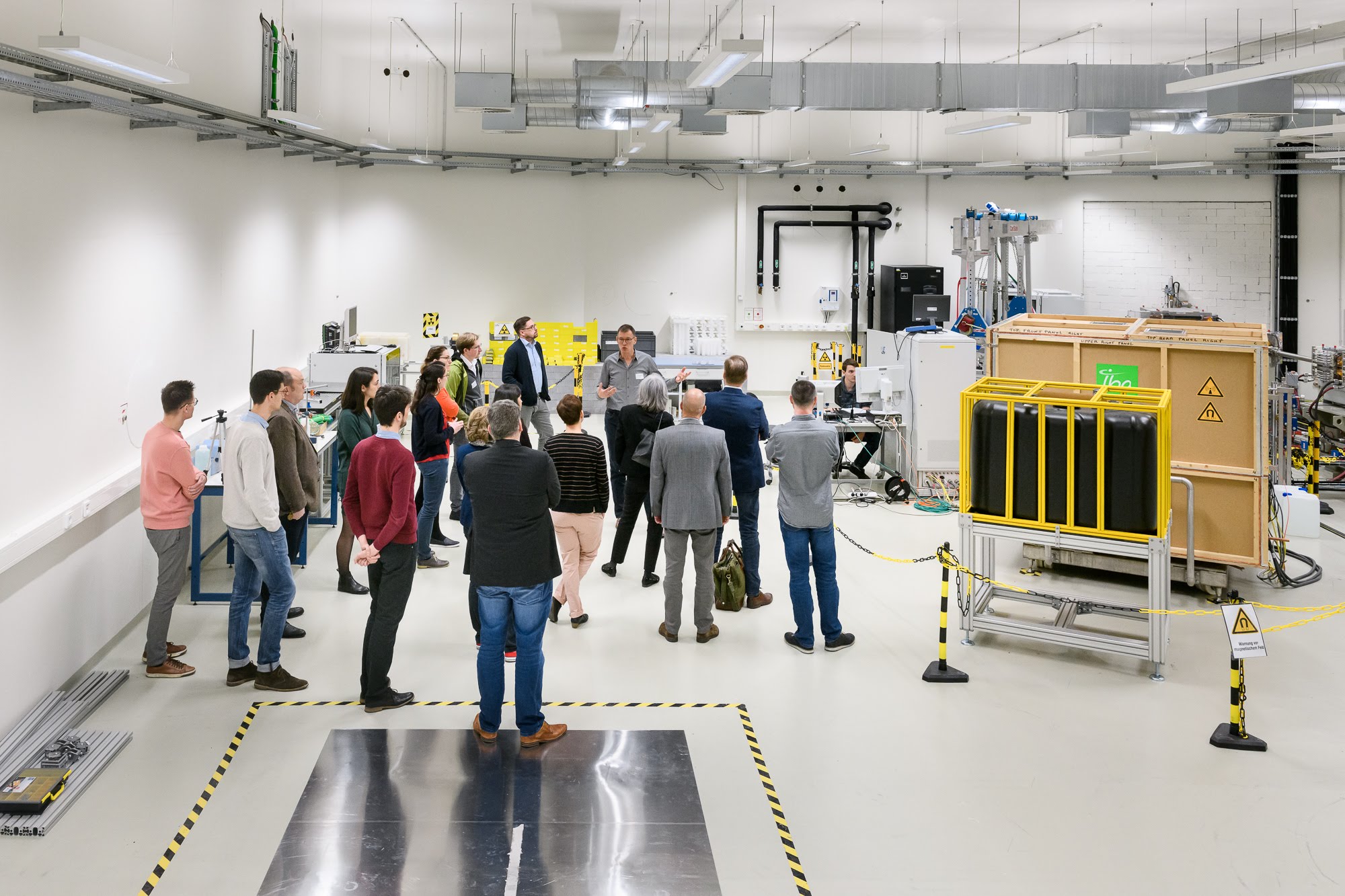 Stefan Pieck, OncoRay, and André Hofmann, biosaxony, welcomed the participants and opened the event. After Dr. Jörg Pawelke, OncoRay, gave an overview of the activities in the experimental area for proton research, the participants could get a look behind the scenes and visit the experimental area. The core of the OncoRay research building is an innovative proton facility. While patients are being treated, OncoRay scientists can concurrently conduct research on and improve the use of protons in cancer therapy. To this end, the proton beam is directed via separate beamlines to an experimental area. Whenever the proton beam is not needed for treating patients it can be used to investigate the impact of the particles in vitro or in vivo or to address physical and technical issues.