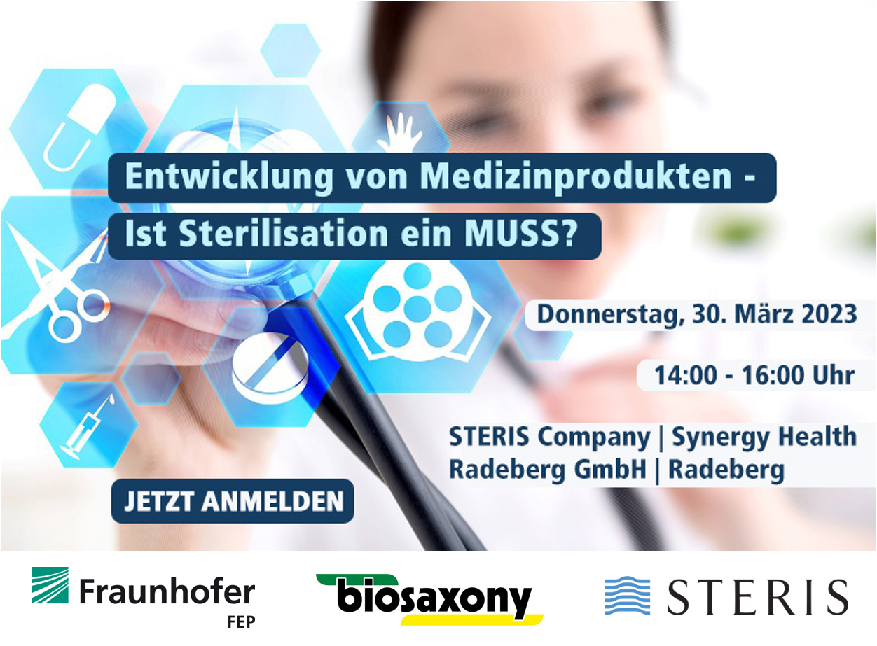 Wir möchten im Rahmen des Kompetenznetzwerkes Steriltechnik weiter für dieses Thema sensibilisieren. Daher laden wir Sie am 30. März 2023 recht herzlich zur nächsten Veranstaltung zum Thema „Entwicklung von Medizinprodukten - Ist Sterilisation ein MUSS?“ ein.